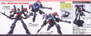 One of the new machines developed by Librarian Works in the "Mobile Suit Gundam SEED VS ASTRAY" manga, the Hail Buster Gundam is an upgraded version of the Buster Gundam with additional firepower and sporting a different color scheme. The Mobile Suit piloted by Finis Socius is now offered as this sharply detailed snap-fit plastic kit that will be fully articulated with polycapped joints upon completion. Its weapon loadouts consist of a 350mm gun-launcher, a 94mm high-energy beam rifle, and two shoulder-mounted 120mm anti-vessel mlti-barrel guns. Hail Buster Gundam can also be equipped with the Shield Striker unit from the Aile Strike Gundam. Foil stickers and marking stickers are provided.