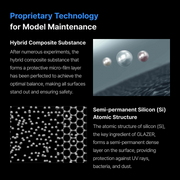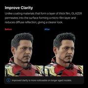 GLAZER is the first product created specifically to maintain models and collectible figures. Using "Nanoparticle Silicon," it forms a thin protective layer that helps preserve a long-lasting, high-quality surface by guarding against UV-induced discoloration. It also reduces diffuse reflections on matte and glossy surfaces while enhancing contrast for a more defined appearance. Its simple and easy application method ensures a hassle-free experience.