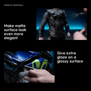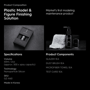 GLAZER is the first product created specifically to maintain models and collectible figures. Using "Nanoparticle Silicon," it forms a thin protective layer that helps preserve a long-lasting, high-quality surface by guarding against UV-induced discoloration. It also reduces diffuse reflections on matte and glossy surfaces while enhancing contrast for a more defined appearance. Its simple and easy application method ensures a hassle-free experience.