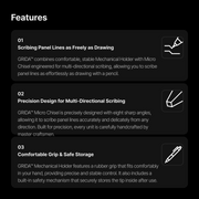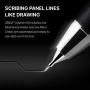 GRIDA™ combines comfortable, stable Mechanical Holder with Micro Chisel engineered for multi-directional scribing, allowing you to scribe panel lines as effortlessly as drawing with a pencil. It can scribe between 0.15mm to 0.2mm lines and up to 0.3mm by scribing multiple times.