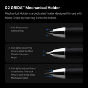 GRIDA™ [Starter Kit] includes one Mechanical Holder and one Micro Chisel, pre-assembled and ready to use right out of the box.