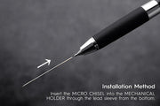 - Components: MICRO CHISEL x 1, MECHANICAL HOLDER x 1, MASTER GUIDE 2 x 1Material: Carbon Steel