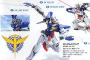The star Mobile Suit from the second season of "Gundam 00" is now a sharp snap-fit model kit! 00 Gundam comes in easy-to-assemble plastic parts that are molded in color, along with a sheet of foil stickers, so painting is not necessary (but would add a more realistic appearance). Upon completion, its polycapped joints will give the Mobile Suit a wide range of motion for a world of posing possibilities! The Twin Drive System (GN Drives on each shoulder) are flexible, and the included pair of GN Sword II can switch between Sword Mode and Rifle Mode. A fine kit of a well-designed mech!