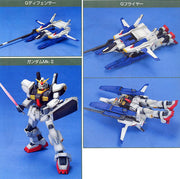 This kit is essentially a two-for-one deal! Featuring both the Mk. II Gundam in A.E.U.G colors and its support fighter, this one is pretty packed. It comes with the standard Mk. II fare like the beam rifle, bazooka, beam saber and shield, but also comes with the long beam cannon and support fighter!