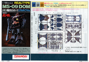 Reissue of Bandai's original, older Dom kit. Comes with extensive decals for marking the stripes, caution markings, etc.