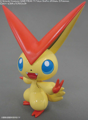 This relatively simple snap-fit plastic kit set allows modelers to build adorable Victini! All parts come molded in color and a sheet of stickers is provided for detail so no painting is required.