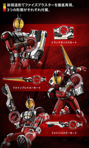 The characteristic armor parts are reproduced with silver parts with an extra finish, and the weapons are three-dimensionalized with new molding. The Faiz Blaster comes in three different forms.