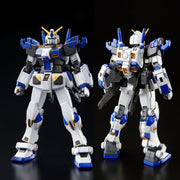 Gundam Unit 4 was first seen in the Kunio Okawara's MS Collection (M-MSV) original design series, the design was then upgraded by Katoki Hajime to be used for the Mobile Suit Gundam: Encounters In Space PlayStation 2 video game and for the manga Mobile Suit Gundam Side Story: Space, To the End of a Flash.