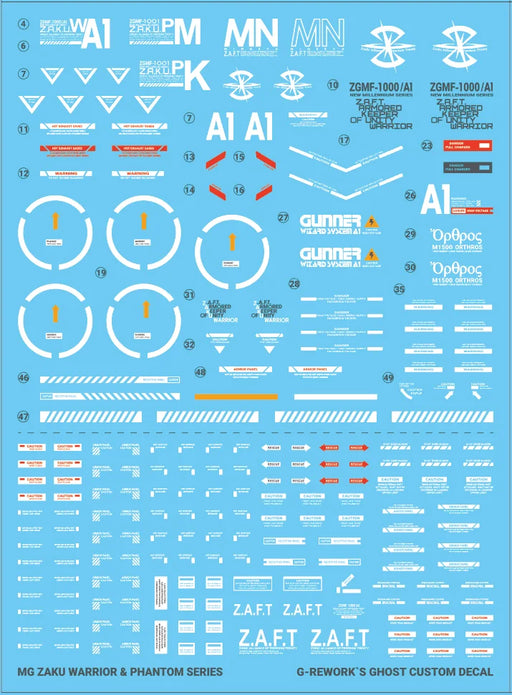 View full detailsThis is a set of high quality and tastefully designed waterslide decal from Korea specifically made for MG ZGMF-1000/A1 Gunner Zaku Warrio (Lunamar...