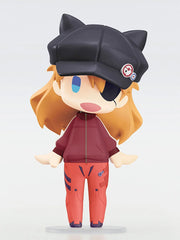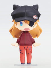 Presenting a new figure of Asuka Shikinami Langley from "Rebuild of Evangelion" in a tracksuit! HELLO! GOOD SMILE is a chibi figure series by Good Smile Company! The neck of each figure includes a simple joint that can be moved left and right. Made with the creative direction of art director Shigeto Koyama, HELLO! GOOD SMILE figures feature a cute chibi design that will leave you wanting more and more!