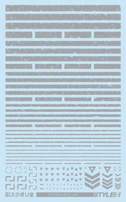 This decal set from Sujiborido presents lines, stripes and other markings with slight damage around the edges from the paint chipping due to battle damage, scratches and peeling caused by external contact. Adding chipping effects to decals is very time-consuming and nerve-wracking -- but these decals make it simple! They apply just like regular water-transfer decals, and will immediately give your robots, mecha and military models that "fresh off the battlefield" look. These decals are made with silkscreen printing for an exquisite finish. Order yours today!