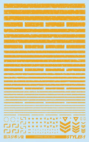 This decal set from Sujiborido presents lines, stripes and other markings with slight damage around the edges from the paint chipping due to battle damage, scratches and peeling caused by external contact. Adding chipping effects to decals is very time-consuming and nerve-wracking -- but these decals make it simple! They apply just like regular water-transfer decals, and will immediately give your robots, mecha and military models that "fresh off the battlefield" look. These decals are made with silkscreen printing for an exquisite finish. Order yours today!
