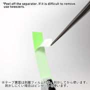 This tape is made of thick, hard PVC material with a strong adhesive on the back; it's suitable as a guideline tape for stripes. It has a stronger adhesive than the regular version of guide tape, but please be sure the item to be worked on is as clean as possible before use to ensure that it'll stick well. Please also be aware that paint and surfacers may peel off when this tape is removed, especially if it's left in place for a long time. Use it with a line scribing tool (sold separately), and simply cut it to the desired length with scissors; then peel the backing off. If the backing is hard to remove, please use tweezers.