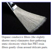 - Organic conducive fibers (the slightly shorter ones) eliminates dust-gathering static electricity while fine PBT resin fibers gently clean around delicate parts.