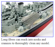 - Long fibers can reach into nooks and crannies to thoroughly clean any model.