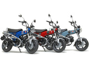 Honda’s Dax traces its history back to its debut in 1969, and in March 2022 the Dax was brought right up to date with the Dax125, a model which still draws heavily on the original’s identity with facets such as the T-bone frame. Its 123cc engine is paired with a 4-speed transmission that can be shifted without rider clutch input, making it an excellent touring option. The Tamiya Limited Edition version of the bike was released exclusively in Thailand and has a sumptuous metallic blue frame adorned with a multitude of limited edition parts.