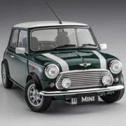 Hasegawa's latest model kit of the Mini Cooper 1.3i is a completely new mold, based on extensive research conducted on the real thing! The Mini (Classic Mini) first appeared in 1959, and was manufactured without a model change until 2000. This is a front-wheel drive vehicle with a compact body and maximum interior space; it's especially popular in Japan, and has been loved for generations. This kit reproduces the Mini Cooper from 1997, the final model of the classic Mini (commonly known as MK.X) produced from 1997 to 2000. Special care has been taken to accurately reproduce the suspension and the characteristic body structure; assembling this kit will give you the seem feeling as restoring the actual car! Metal inlets are included for the dashboard meter frames, as are window stickers; some parts (front grille, front and rear bumpers, headlight and taillight mirror surfaces, emblem, fuel filler cover, muffler, doorknobs, etc.) are plated as well. Bonus parts are included for the center meter-type dashboard, wood steering wheel, fender mirror (plated), and a European license plate, too. Order yours today!