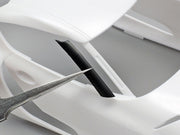 - Black color parts on the rear car (A pillar, grille, spoiler, etc.) are molded in black for an easier paint job.