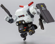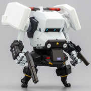 A police specification "Nacchin" model kit is now available! The Special Vehicle Patrol Nacchin is equipped with "advanced future type prediction support AI," and sports Type 07 composite heat-resistant armor and a new N-type hydrogen battery. Lots of new mold parts are included, such as a patrol lamp, cockpit head, and shoulder armor; once assembled, it's loaded with 62 points of articulation for superior posability! Two types of patrol lamps are included for the back of the head: V-shaped and T-shaped. The kit's runners are molded in six colors, and the front-view eye panels parts, chest police badge, and both sides of the torso are prepainted, so you can get a result close to the package illustration just by assembling the kit. The Weapon Unit 41 Ballistic Shield is included, and it's armed with a special large handgun and a long baton (which can be used with Frame Arms and Frame Arms Girl figures too)! The hatch on the head can be opened and closed, and three replacement eye panels are included. Order yours today!