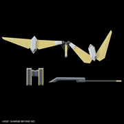 The Reiki Kai features high articulation thanks to its expertly designed joint structures, as well as the cylinder gimmick in the torso that moves in conjunction with the shoulder joints. The thruster units can also rotate and Bandai has recreated the unfolding mechanism in the waist rear skirt. The included Naginata weapon can also extend and retract for plenty of battle poses!