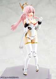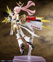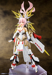 AUV Amaterasu Regalia returns to Kotobukiya's "Megami Device" figure-kit lineup! She's the successor to Asura; her counterpart is the well-received AUV Susanowo, and she uses the same body, with her face, hair and chest newly sculpted to create a new character. Her armaments have been completely redesigned and named "Regalia" to reflect her royal status; they're easy to assemble and form a flashy silhouette when completed! The characteristic weapon parts and large cape parts that hang over her shoulders can be rearranged to change their shape. She comes with three prepainted faces, and decals for her eyes and markings; she can be displayed in "body mode" by removing her armor. The amazing range of motion of her "Machinika" body allows her to wield her weapons and sit down in a natural style; a variety of joint parts are included too, and of the compatibility of her 3mm-diameter joints and heads placed in each part, they can be used with "M.S.G," "Frame Arms," "Frame Arms Girl," "Hexa Gear," "Sosai Shojo Teien," and "Arcanadia" series model kits as well. Order her for your own collection today!