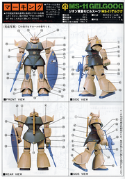 Reissue of Bandai's old Gelgoog kit. This is from the early 80s...posable when completed but no poly-caps, requires cement and paint to complete. Includes decals.