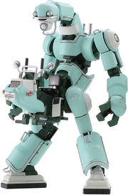 The Mechatro Chubu is a new robot from the makers of the Mechatro WeGo! This 1/35-scale kit includes parts to build two of this helpful robot -- one in green and one in light green. The parts are molded in color and they snap together, so neither glue nor paint are needed. The robot will be posable after assembly, and it comes with a towing cart that can be used to transport Mechatro WeGo robots or other items. An extremely happy female pilot figure is also included (glue and paint are required for the figure). Order yours today!