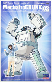 Here's a new Mechatro Chunk model kit! It's molded in color, and it also snaps together so glue isn't necessary; it's also posable after assembly. A resin "support girl" figure is included too, to cheer on everyone learning to pilot the massive Chunk! (Glue and paint are required to complete the figure.) Order yours today!