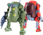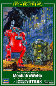Hasegawa's "Mechatro WeGo" robot model series collaborates with "Votoms" to bring us this amazing set of two robots -- one designed after the Scopedog, and the other made to resemble Kiriko! Many new parts have been added to bring this dream combination to life; a water gun version can be selected as an option for the Scopedog's rifle. A two-eyed face that's more like the Mechatro WeGo's face is included too. This set of two kits snaps together, and they're molded in color; decals for their markings are included too. Any "Votoms" fan would love these -- order yours today!