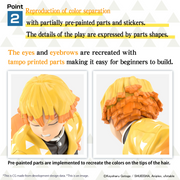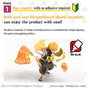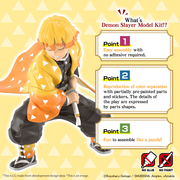 This dynamically posed figure model kit of Zenitsu Agatsuma from "Demon Slayer: Kimetsu no Yaiba" is easy to assemble, even for beginning modelers! It uses pad printing and pre-painted parts to achieve both ease of assembly and high quality. Glue is not needed, so anyone can assemble this kit with ease; pre-painted parts for the pattern and color of his haori and leg ties are included, so you can get a great result just by assembling the kit. The only tool you'll need is a set of nippers! The eyes and eyebrows are reproduced with pad printing, and the ombre of his hair color is painted. The wrinkles in his clothing are carefully sculpted for realism. You'll love the result -- order yours today!