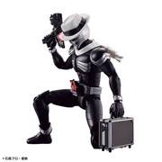 Kamen Rider Skull from "Kamen Rider W" joins the Figure-rise Standard model-kit lineup from Bandai! His characteristic head is modeled in great detail, with silver-finished parts for an extra metallic feeling. His iconic hat is of course included, along with an extra brim with a rip in it. The Skull Memory can be attached to the Skull Magnum; in addition to the normal mode, the maximum mode can be reproduced by rotating the barrel. A briefcase that can be opened and closed is also included; the Double Screwdriver, Skull Memory and Gaia Memory included with the Figure-rise Standard Kamen Rider W Cyclone Joker (sold separately) can be stored inside. Interchangeable hands are also included. Order him for your own collection now!