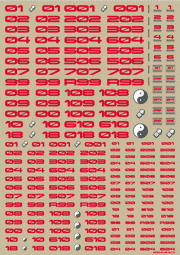 HiQ Parts TR Decal 3 Number Red (1 Sheet)