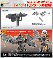 Kotobukiya introduces the new "Stride" series in their "M.S.G (Modeling Support Goods") lineup! The Stride SMG is a submachine gun with a multipurpose launcher that's made up of four units: barrel, mechanism, magazine, and stock. It can be rearranged into submachine gun mode and handgun mode; it can also be combined with other items in the Stride series, allowing users to create their own original weapons. Order yours today!