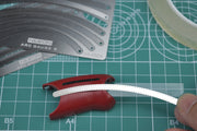 - Use the stencil to mark and cut out the curve on a Carving Guide Tape (Consider putting the carving tape onto a masking tape first. This protects the adhesive and keep the carving tape sticky)