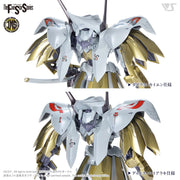 As the name suggests, the super robot, which is also the lineage of the hero of the story "K.O.G. (the KNIGHT of GOLD Type D MIRAGE)", has been thoroughly reproduced from its shape to the smallest detail in a powerful 1/100 Scale. The "SCHPERTOR K.O.G." is now available in two versions: a version for the first owner, the sword saint Dimos Hiawaraki, and a version for his apprentice, Douglas Cayenne, both of which can be selected to suit your preference!