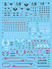 This is a high quality and tastefully designed waterslide decal from Korea specifically designed for RG ORB-01 Akatsuki Gundam Oowashi Unit!