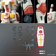 This special Gundam has been consolidated into a 1/144 scale GUNPLA provided with newly molded parts to recreate the original shape and coloring of the figure. The parts are also divided for easy sticker application.