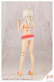 Kotobukiya's 'Sousai Shojo Teien' plastic model line continues, this time featuring Madoka Yuki in an adorable swimsuit! The swimsuit shoulder straps, pink polka-dot pattern, and sandals are all pre-painted, too! The polka-dot pattern is pre-painted even on the body for sitting while hugging the knees, so just assembling the model kit will result in a product close to the character model for users to enjoy! The balance of her proportions have been completely renewed and rollable movement has been added to the thigh joints to enable lively beachside poses. Not only that, but a ton of other extras like new feet parts, hand parts, and so much more are included! Four high-detailed pre-painted face parts are included, but the sunflower accessory will require some painting. Be sure to get the real summer vibes by ordering her for your collection today!