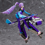 Mikumo Guynemer, the "Mysterious Venus" from the tactical sound unit Walkure in "Macross Delta," is joining the "V.F.G. (Variable Fighter Girls)" action-figure model-kit series from Aoshima! Her VF-31J Siegfried parts are made in her original color, and she comes with a multi-drone that doubles as a display stand. Mikumo's body and hair are partially pre-painted, and a face part with pre-painted eyes and waterslide decals for her expressions are included too. This model kit is molded in color and snaps together so glue isn't needed; stickers and decals are included for the markings. The mech can reproduce all three forms: Fighter, Gerwalk, and Battroid, and various accessories such as a fold speaker and microphone are included. Order her for your own collection today!