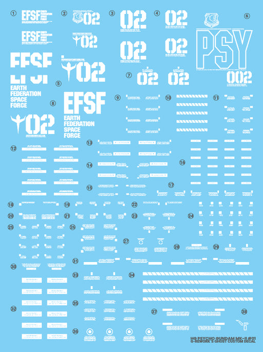 High quality and tastefully designed waterslide decal from Korea specifically made for HGUC 1/144 MRX-010 Psycho Gundam Mk-II!