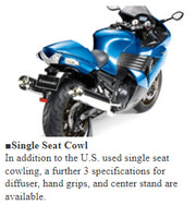 With its debut in 2006, the Kawasaki ZZR1400 (also known as the Kawasaki Ninja ZX-14 outside of Europe and Japan) was given the name "The Open Class King". Loaded on an  aluminum monocoque frame, the ZZR1400 is powered by a thumping 1352cc four-stroke, DOHC, inline four engine which pumps out an impressive 190hp. With its eye catching aero dynamical form and aggressively-styled front fairing featuring 6 independent front lights, captures the essence of the ZZR. Without needing to say anything about the bikes impressive top speed and its rock solid stability at such speeds with superb handling to match, it produces the highest performance in every situation, which is the aim of Kawasaki's flagship motorcycle.
