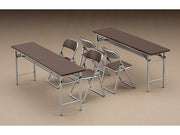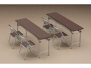 Perfect for your 1/12 scale figures! Includes two desks and four chairs. Sorry, they don't actually fold! Assembly required. Molded in two colors (mahogany and gray), so you don't have to paint them if you don't want to. The photos here show painted models.