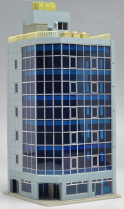 -Modeled a 6-story corner building with a modern exterior, with large windows that extend all the way to the sides.