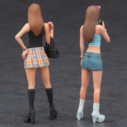 These two young ladies wear clothing inspired by early 1990s outfits worn by legendary Japanese entertainer Namie Amuro! Decals are included for the patterns on the plaid skirt and striped top, as well as their eyes and the lenses of the sunglasses. Will be 7cm and 7.1cm tall when completed.