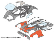 - Window and roof parts are slotted into the upper monocoque. Outer pillars, body panels and more are attached separately to the frame.