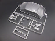 The body of the car is molded as a single piece, except for the front part; the front parts are separate. The wheels are enclosed with gunmetal painted parts, and the wheels and axles are pressed in with polycaps. The front tires are steerable, and the rear axle is made of metal shaft parts and can be rotated after assembly. The interior is bathtub style, and the dashboard is a separate part. Clear parts are included for the front lights, windows, four-round tail lights, and tail lights. Order yours today!