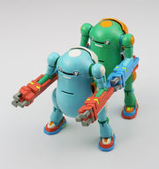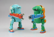 This kit builds into two Mechatro WeGo robots with upgraded Power Arm attachments--the winner of a fan popularity vote! They're fully posable once assembled; you can connect their Power Arms together (it's "suitable for going to school in groups," according to the packaging). They're easy to assemble with snapfit parts (glue is needed only for the child pilot figures), and they're molded in color too. And as always with Mechatro WeGo kits, the box cover art is a delightful glimpse into a world where little kids have their own robot friends to ride to school in. Add them to your mecha lineup today!