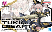 Tukirna-Diearth (Innocente Form) is the newest member of the "30 Minutes Sisters" (30MS) figure-kit lineup from Bandai! This model kit is an all-in-one item that includes a character body, three types of interchangeable faces with tampo printing, and armor parts. The runner parts are arranged in an optimal manner for smooth and easy assembly. The armament can be rearranged from its hammer-like mode to a spear mode. The small head and body are divided into upper and lower parts, allowing for super-expressive posing. Her twin tails have ball joints at the bases for movabiity, and a rabbit-ears headband made of multiple parts is also included! Two different skirts are included: a normal one and one with a flipped hem so it won't interfere with her legs during action poses. Joint parts using light-concentrating resin are included. She can of course be combined with any of the face, hairstyle, and body parts in the "30 Minutes Sisters" lineup, and since she uses the 3mm-diameter shaft common to Bandai's "30 Minutes" series, she can use parts from the "30 Minutes Mission" lineup too! Order her for your own collection today!