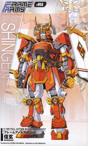 This is the first Frame Arms model to have a uniquely characteristic emblem designed on the helmet and its back. The scarlet, black, and gold color schemes make this model stand out even when displayed on its lonesome.