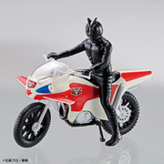 This small and easy-to-assemble (instructions are printed right on the box!) kit of the New Cyclone and Kamen Rider New 2 is molded in color, and comes with stickers and decals for the markings; a figure of Kamen Rider New 2 (molded in black) is also included. The figure features a set of arm parts for his transformation pose!